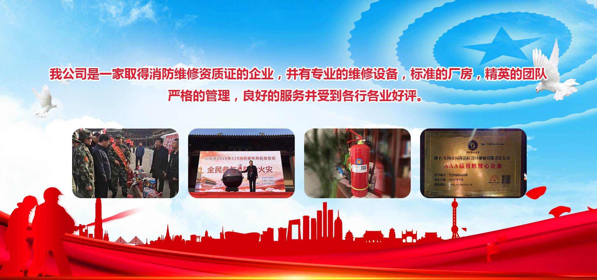 大同市同渾消防器材維修有限責(zé)任公司,位于大同市同泉路389號,始建于2000年,是公安部消防局定點(diǎn)銷售和維修的企業(yè),歷經(jīng)多年的創(chuàng)建、發(fā)展和拼搏,現(xiàn)有多家消防器材廠商供應(yīng)我公司,并有現(xiàn)代化維修設(shè)備,標(biāo)準(zhǔn)的廠房,嚴(yán)格的管理,優(yōu)良的設(shè)備,良好的服務(wù)并受到各行各業(yè)的好評。總經(jīng)理劉國玉嚴(yán)格管理,嚴(yán)格要求,精益求精,認(rèn)真負(fù)責(zé),帶領(lǐng)團(tuán)隊(duì)熱烈歡迎各界朋友顧客光臨。